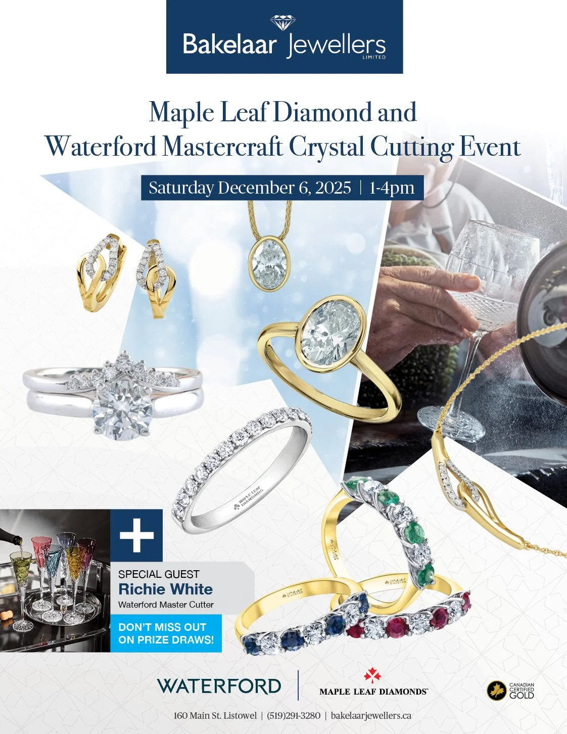 Be our guest at our Maple Leaf Diamond and Waterford Mastercraft Crystal Cutting Event on December 6th from 1 - 4pm. Witness the artistry of Master Cutter Richie White as he demonstrates the unrivalled quality and craft of cutting Waterford crystal. We're also having special prize draws! Don't miss out.