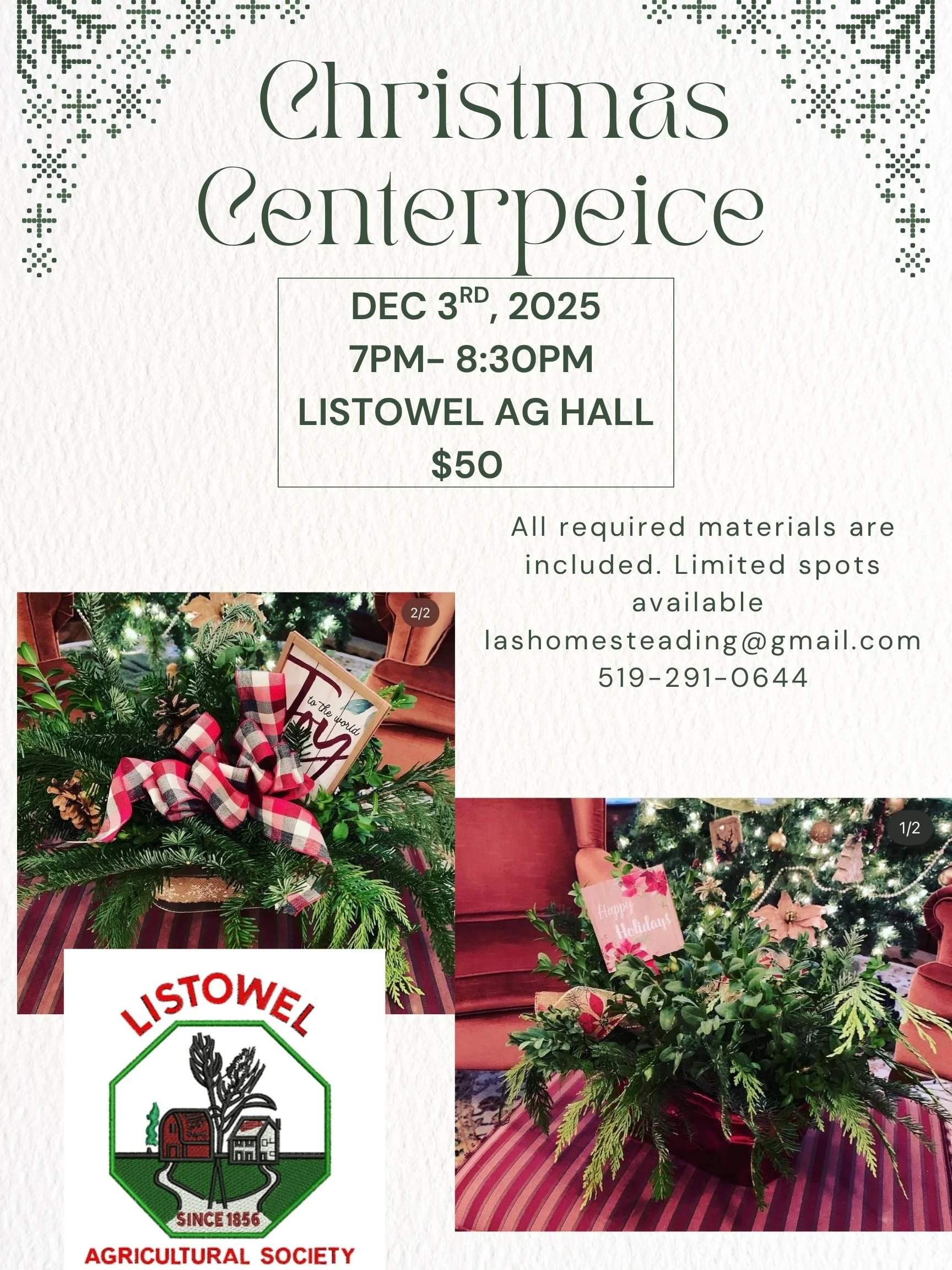 Learn to make a Christmas Centerpiece, with all required materials included. Limited spots available, $50 each person. Register by email: lashomesteading@gmail.com