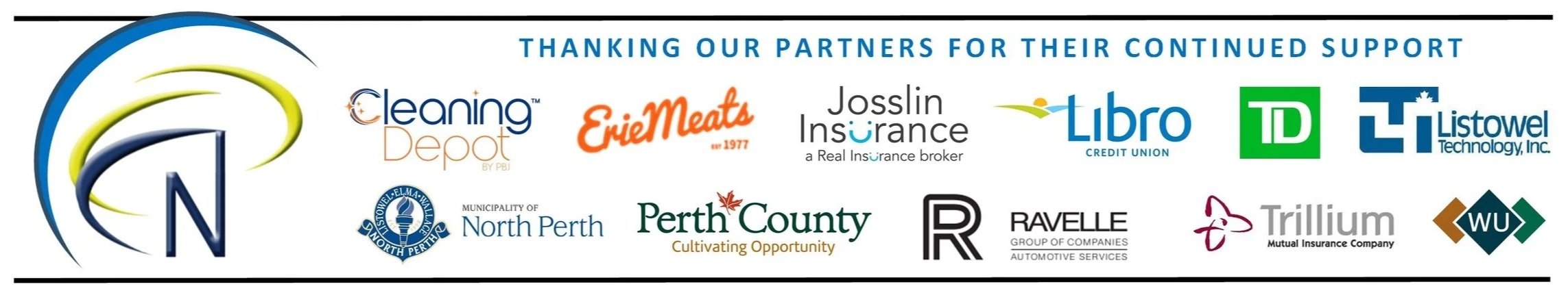The Ravelle Group, Erie Meats, LTI, The Municipality of North Perth, Cleaning Depot, Libro Credit Union, W&U, Josslin Insurance, Trillium Mutual Insurance, TD Commercial Banking